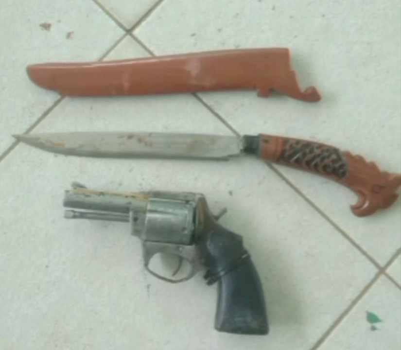 Dari tangan kedua pelaku, polisi menyita barang bukti yang mengerikan, berupa satu pucuk senjata api rakitan jenis pistol lengkap dengan magazin dan tiga butir amunisi tajam, serta sebilah pisau panjang berukuran sekitar 60 sentimeter yang diduga digunakan untuk mengancam korban.