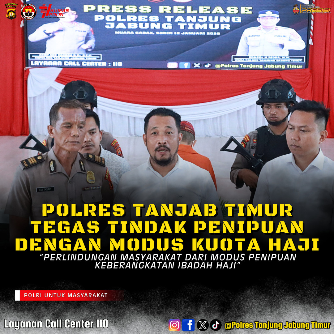 MUARASABAK — Dugaan penipuan berkedok keberangkatan ibadah haji terjadi di Kabupaten Tanjabtim. Seorang warga melaporkan kasus tersebut ke Polres Tanjabtim setelah mengalami kerugian hingga Rp235 juta. Terlapor dalam kasus ini diketahui merupakan oknum Aparatur Sipil Negara (ASN) yang bertugas di Rumah Sakit Nurdin Hamzah.