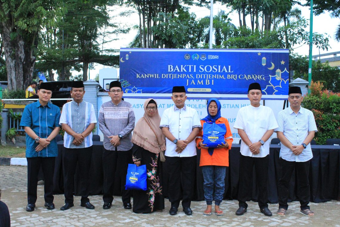 Jambi – Kementerian Imigrasi dan Pemasyarakatan melalui Kantor Wilayah Direktorat Jenderal Pemasyarakatan (Ditjenpas) Jambi bersama Direktorat Jenderal Imigrasi serta PT Bank Rakyat Indonesia (BRI) Cabang Jambi menggelar kegiatan bakti sosial bagi masyarakat dengan tema “IMIPAS Kolaborasi BRI, Jambi Peduli.” Kegiatan tersebut dilaksanakan di Kantor Wilayah Direktorat Jenderal Pemasyarakatan Jambi sebagai bentuk kepedulian sosial sekaligus memperkuat sinergi antarinstansi dan mitra kerja dalam membantu masyarakat., pada Senin (16/3).