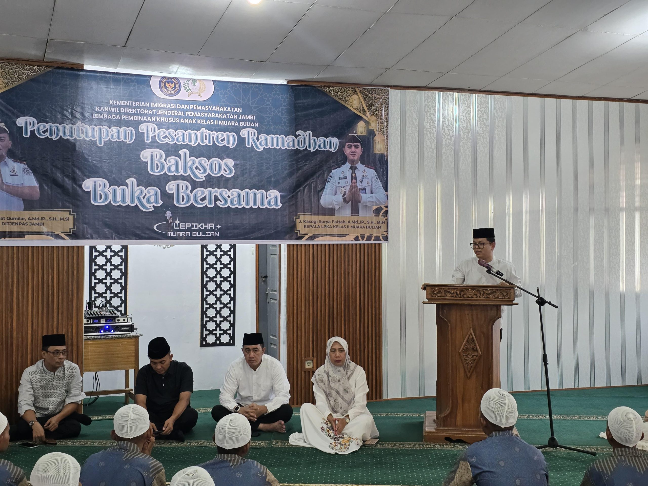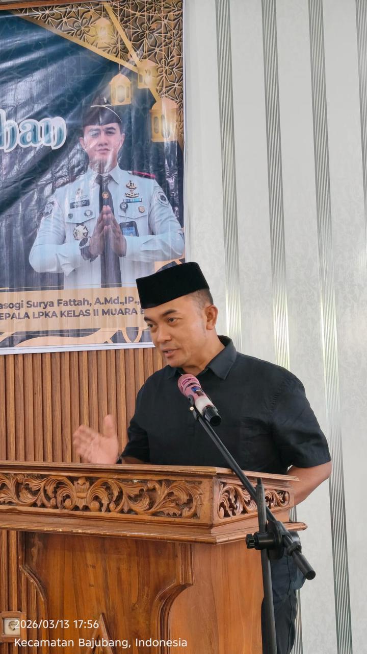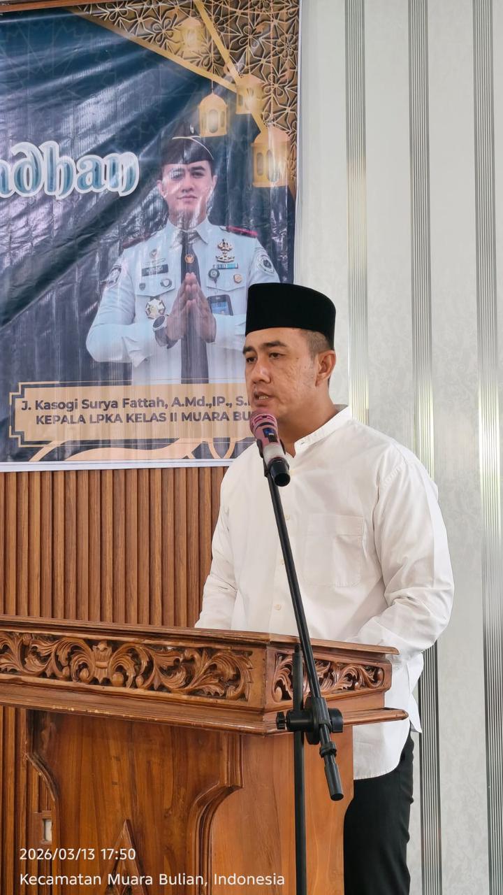 Muara Bulian — Kepala Kantor Wilayah Direktorat Jenderal Pemasyarakatan (Ditjenpas) Jambi, Irwan Rahmat Gumilar melaksanakan kegiatan Safari Ramadhan di Lembaga Pembinaan Khusus Anak (LPKA) Kelas II Muara Bulian. Kegiatan ini menjadi bagian dari upaya mempererat silaturahmi sekaligus memberikan motivasi kepada anak binaan agar terus memperbaiki diri selama menjalani masa pembinaan.(13/3).